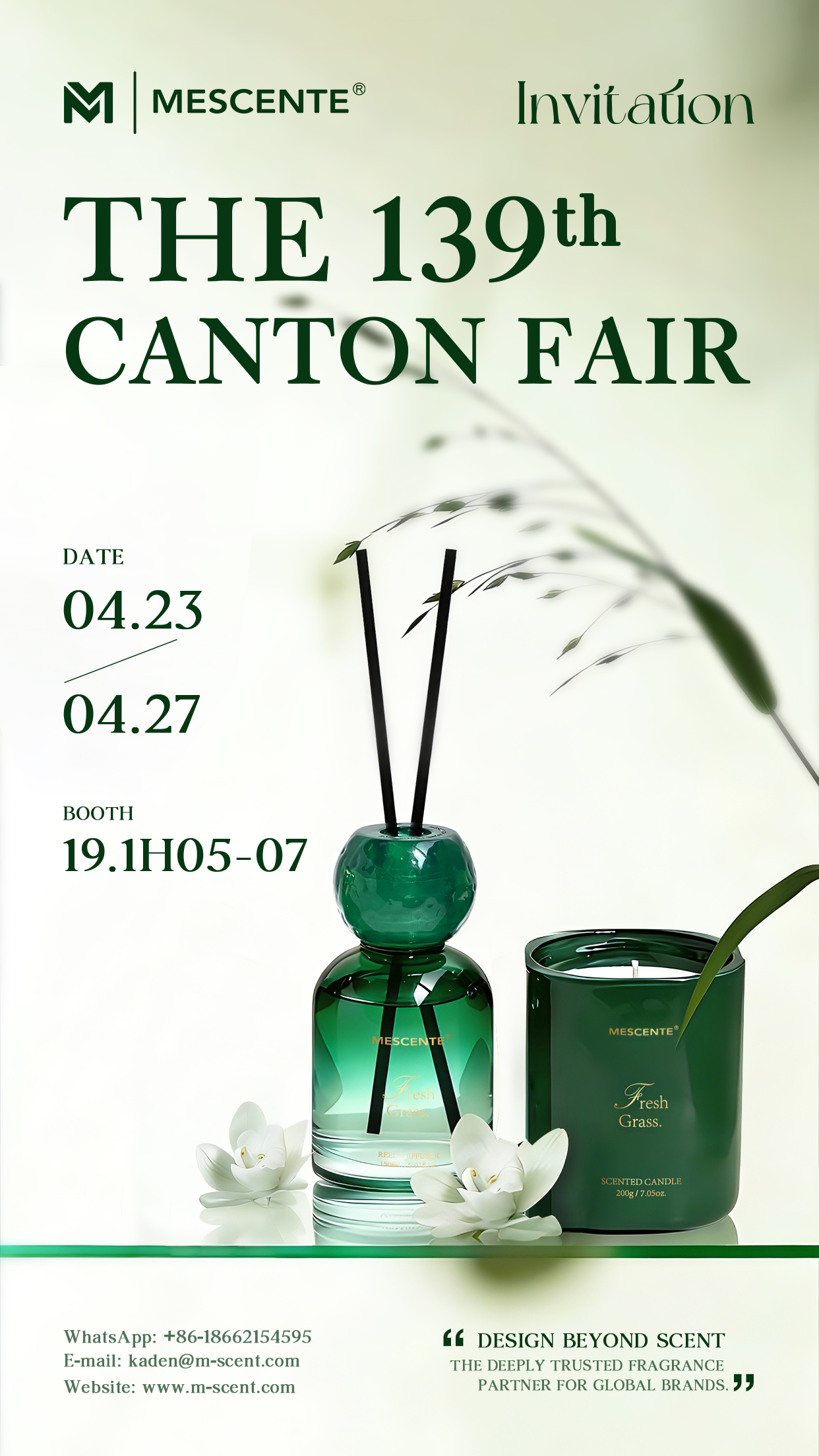 يسعدنا أن نقدم لك دعوة حارة لزيارة شركة MESCENTE في معرض كانتون الـ 139 - وهو حدث تجاري عالمي رائد يربط الشركات في جميع أنحاء العالم. باعتبارنا أحد الخبراء الرائدين في تصميم وتصنيع العطور المنزلية، يسعدنا أن نعرض لكم أحدث ابتكاراتنا ومنتجاتنا المتميزة في المعرض.